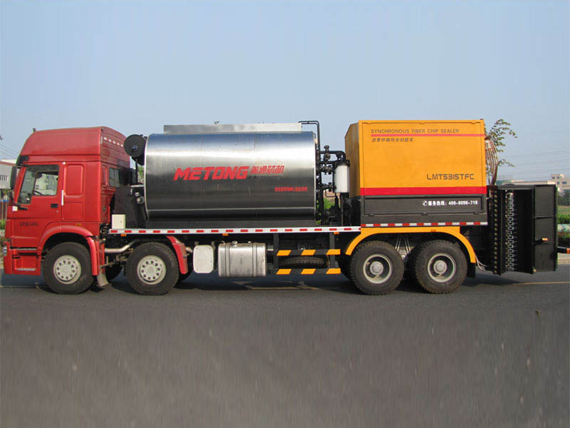 LMT5315TFCW synchronous fiber reinforced asphalt seal vehicle is a new kind of road maintenance equipment designed by Metong. This equipment is mainly applied into the construction of the pavement surface and SAMI, which could effectively solve the crack problems and prolong the road service life.