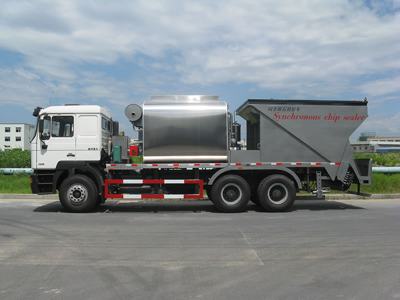 Fiber Asphalt Chip Sealer (2 in 1) coat technology adopted by the fiber asphalt chip sealer (2 in 1) is a new technique. The asphalt (generally emulsified asphalt) and glass fiber are sprayed simultaneously. Then the aggregate is sprayed to form one new wearing layer or the press absorption interlayer.